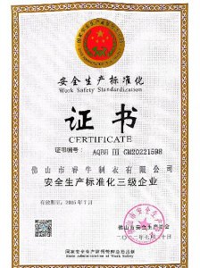 安全生產標準化三級企業 證書 -