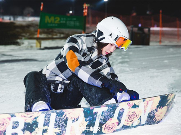 在定做滑雪服定制中,應該選擇大拉鏈口和口袋,這樣戴手套方便,也可以把常用的滑雪裝備分門別類的放進去。 滑雪手套也應該大方一些,五指分開。 手套的手腕要長,最好蓋住袖罩。 如果能用松緊帶密封,就可以有效的防止雪的進入。 滑雪帽最好選擇套頭款式,只露出臉的前半部分,可以防止冷風對臉部造成傷害,這對女性來說尤為重要。
