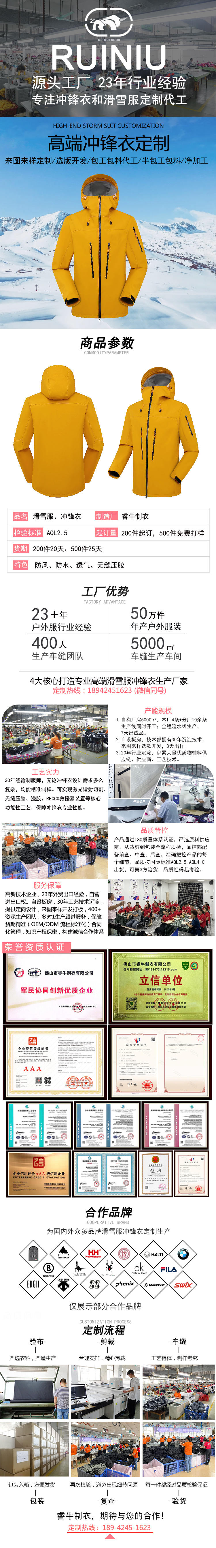 高端沖鋒衣生產代工廠自有板房,包工包料,凈加工,月產5萬件